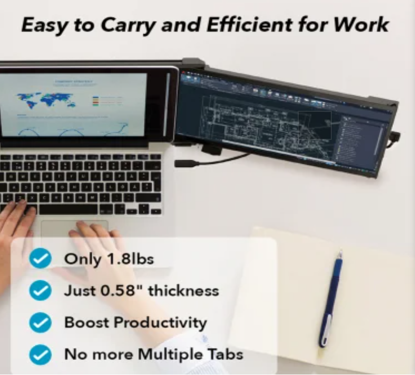 Enhance your productivity on the go with the Mobile Pixels Nexus™ 14.1-Inch Portable Monitor, designed to adapt to any task, from screen sharing to multitasking or portrait-mode viewing. This lightweight and ultra-slim extra screen weighs just 1.8 lbs and measures 0.6 inches thick, making it perfect for travel and mobile workstations. Setup is quick and effortless — simply connect via USB-C®, USB-A, or HDMI® and start working instantly with laptops, smartphones, and more. The 14.1-inch Full HD 1080p display delivers sharp, vibrant visuals with minimal bezels for an immersive viewing experience. Built for durability and supported by reliable after-sales service, the Nexus™ 14.1 is the ideal portable second monitor for professionals, students, and travelers seeking flexibility and high-quality performance anywhere.